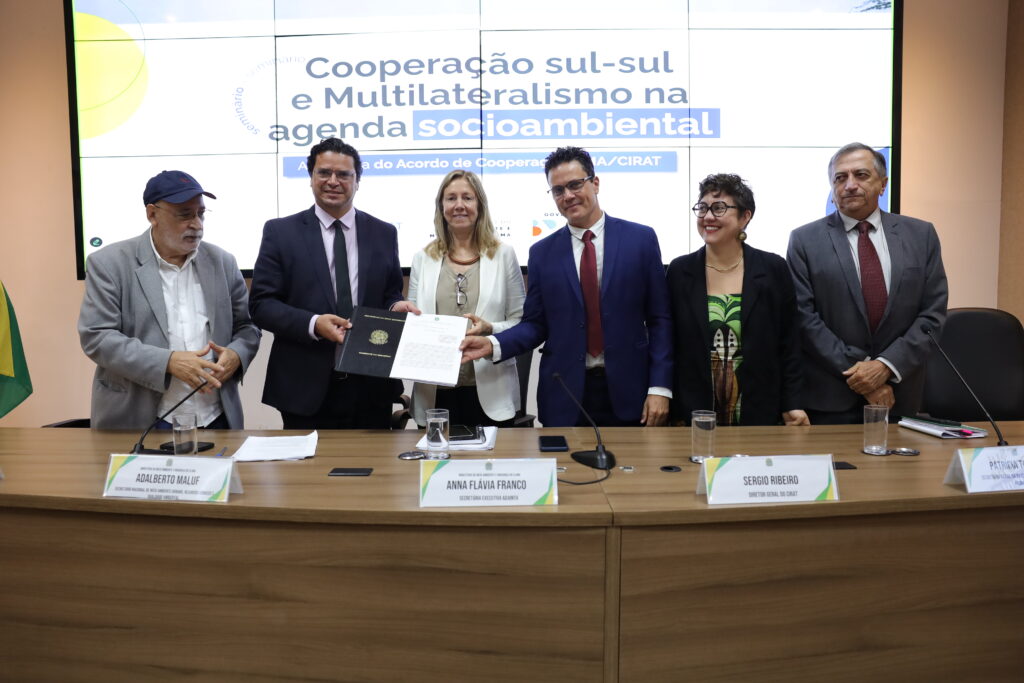 Firmamos um Acordo de Cooperação Técnica (ACT) com o Ministério do Meio Ambiente e Mudança do Clima (MMA) para fortalecer ações integradas em segurança hídrica, alimentar e climática, com foco na cooperação Sul-Sul e no multilateralismo ambiental.